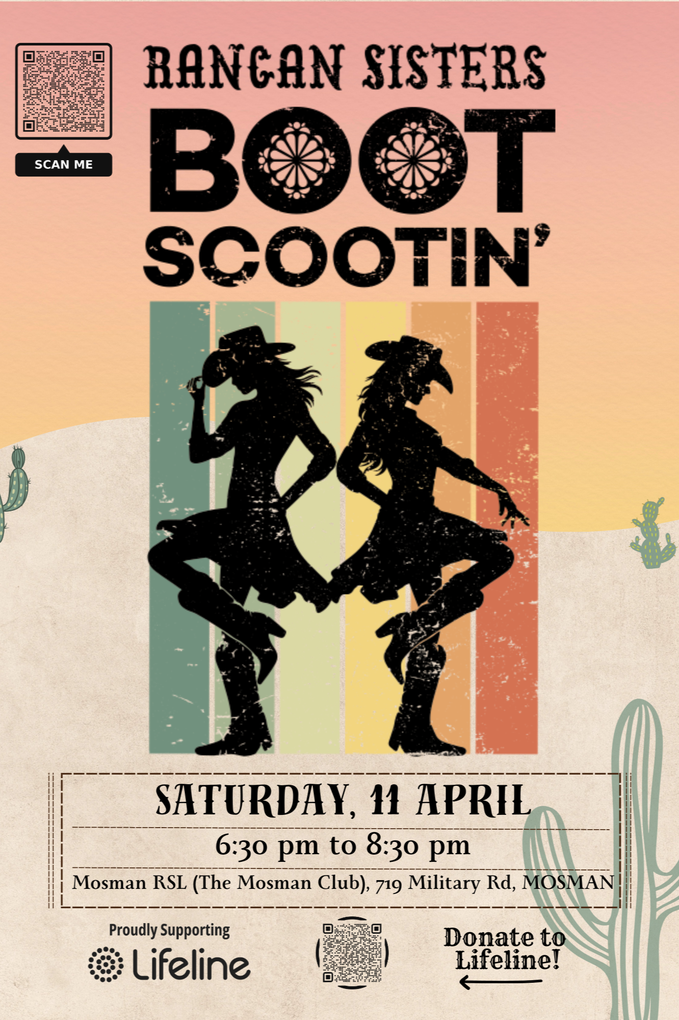 FUNDRAISER FOR LIFELINE, A PORTION OF YOUR TICKET PRICE AND LEARN TO LINE DANCE WILL BE DONATED TO LIFELINE.